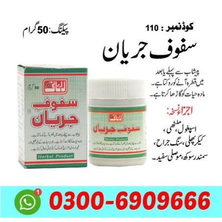 Safoof Jaryan (also written Safoof-e-Jarian) is a traditional Unani/herbal powder widely used in Pakistan and South Asia as a natural herbal remedy aimed at male reproductive health and related conditions. It’s not a conventional pharmaceutical drug, but a herbal supplement promoted for specific uses based on Unani/folk herbal practices.